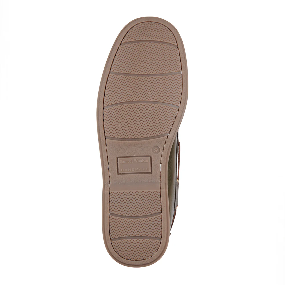 Expertly crafted for lasting quality, our Samuel Windsor Olive Deck Shoes showcase superior leather and exceptional handmade craftsmanship. The rich olive leather upper is fully leather-lined, ensuring both comfort and breathability. Hand-stitched detailing highlights our dedication to traditional shoemaking, while the non-marking rubber sole offers reliable grip and durability. Perfectly blending practicality with refined style, these deck shoes are an essential addition to your footwear collection. BV497